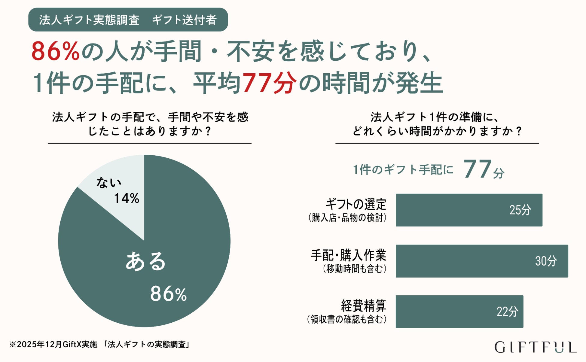86%の担当者が法人ギフトの手配に手間や不安を感じている