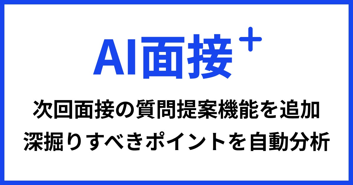 「AI面接+」に次回面接の質問提案機能を追加 〜AIが候補者の回答を分析し、深掘りすべきポイントを自動提案〜
