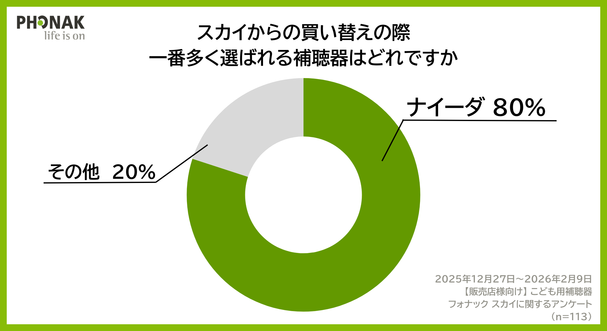 フォナックで最もパワフルな補聴器 “ナイーダ” シリーズは、2007年誕生以来世界各国で愛されているロングセラーシリーズです。この度、スカイ取り扱い販売店113店舗にアンケートを実施した結果、