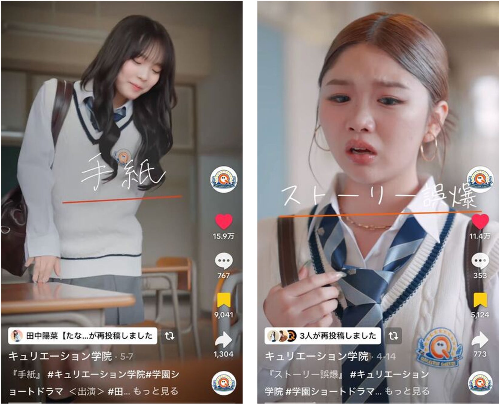 『キュリエーション学院』は、QREATIONが企画・プロデュースを手がけるオリジナルの学園ショートドラマアカウントです。Z世代を中心に支持を集める若手俳優やインフルエンサーらが出演し、恋愛や友情、悩みといった誰もが共感できる青春の一瞬を切り取った物語を描いています。2025年4月の開設以降、約3ヶ月で総再生回数1億回を突破するなど大きな注目を集めており、特に、「手紙」は累計1260万回再生を突破し、「ストーリー誤爆」「カンニングがバレた」「海苔が気になる」も累計500万回再生を超え、大きな反響と共感をいただいております。
