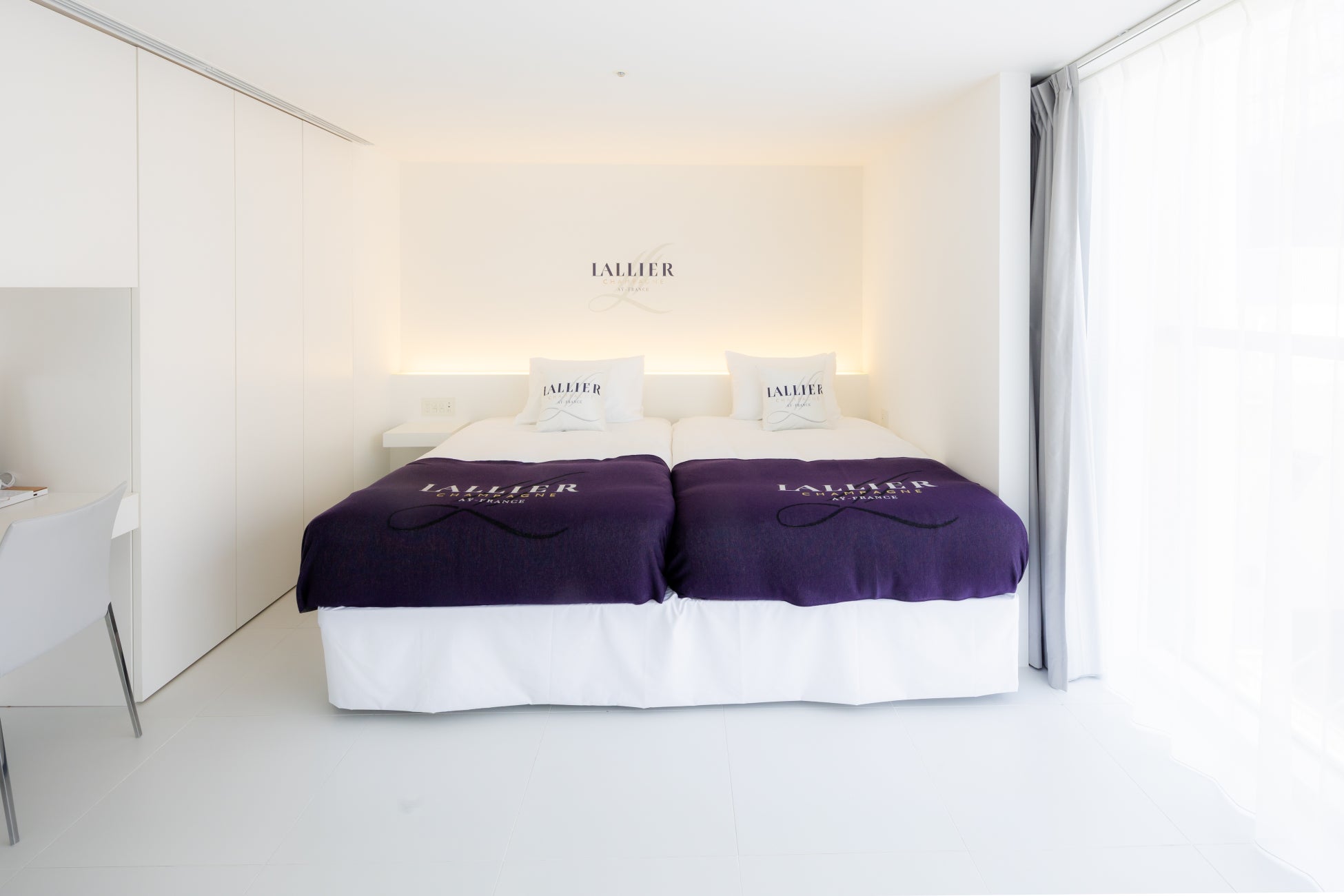 11の名門シャンパーニュ・メゾン(生産者)に働きかけを行い正式に許可を得た、世界初となるオフィシャル・シャンパン・ホテル。11のメゾンは、「ボランジェ」「シャルル・エドシック」「レア・シャンパーニュ」「テタンジェ」「ジョセフ・ペリエ」「ニコラ・フィアット」「ラリエ」「ジャン・ヴェッセル」「テルモン」「キュペルリー」「ドゥモアゼル」。11室ある客室全てをメゾンと共に造り上げており、世界的建築家・小川晋一氏が手掛けたミニマルで洗礼されたデザインの客室では、各メゾンの歴史や想い、世界観、シャンパーニュ文化を体感いただけます。鮨とシャンパーニュのマリアージュをお楽しみいただける、カウンター10席の鮨レストラン「AWA SUSHI」を併設。