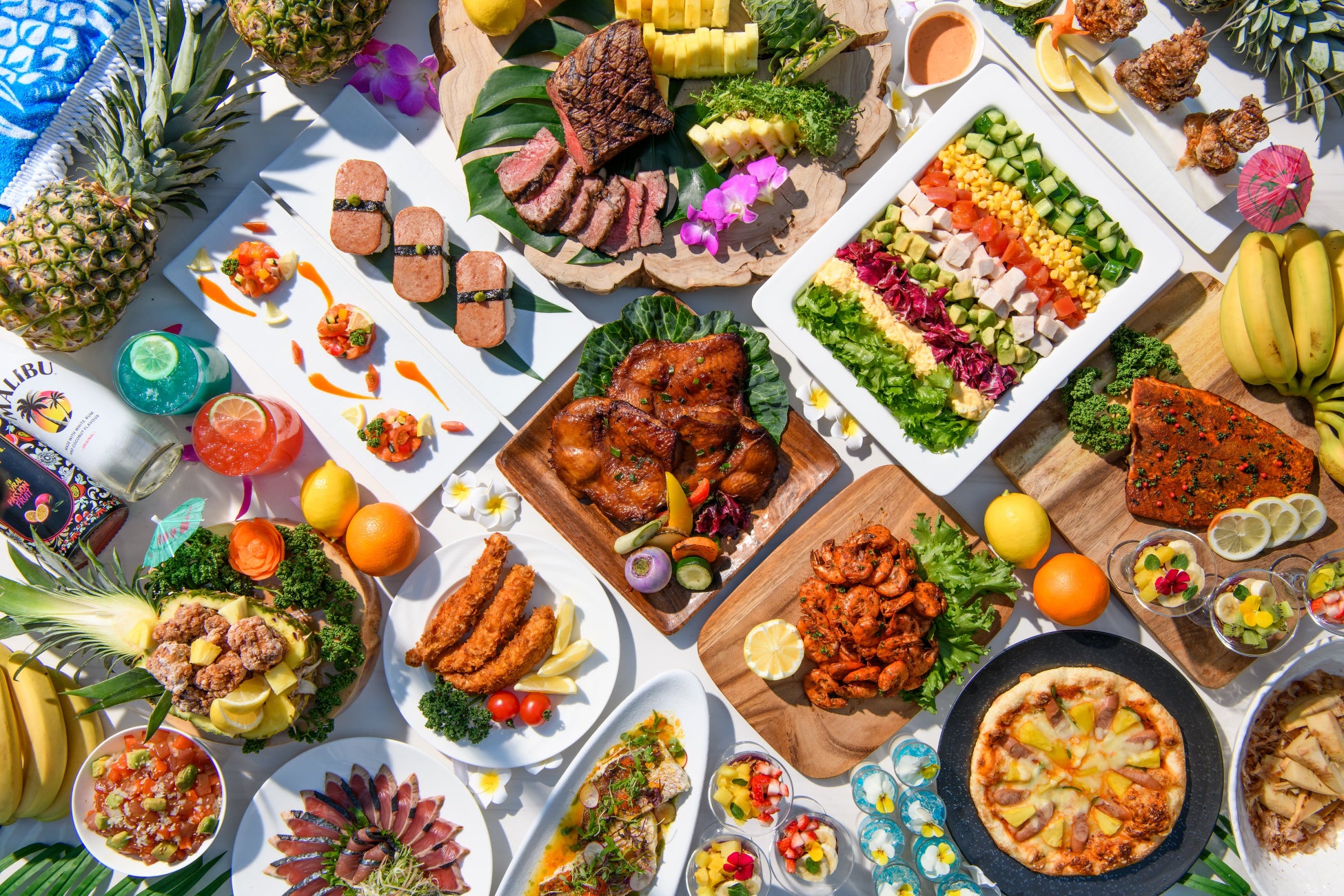 南さつま市の自然が育んだ豊かな食材を活かし、ハワイの定番料理や人気のスイーツと組み合わせたオリジナルブッフェを提供します。シェラトン鹿児島の料理人が和食の技法を用いて仕上げた「ポキ丼」や、南さつま市近海で獲れた旬魚に桜島小みかんのパウダーをまぶしてさっぱり仕上げた「南さつま産旬魚のポシェ レモンジンジャー風味」、ハワイの美しい海をイメージした爽やかなブルーカラーのスイーツに南さつまが誇る塩『坊津の華』を加えた「坊津の華のパンナコッタ」など、ハワイのトロピカルな雰囲気と南さつま市の恵みが織りなす、特別な美食体験をお楽しみください。