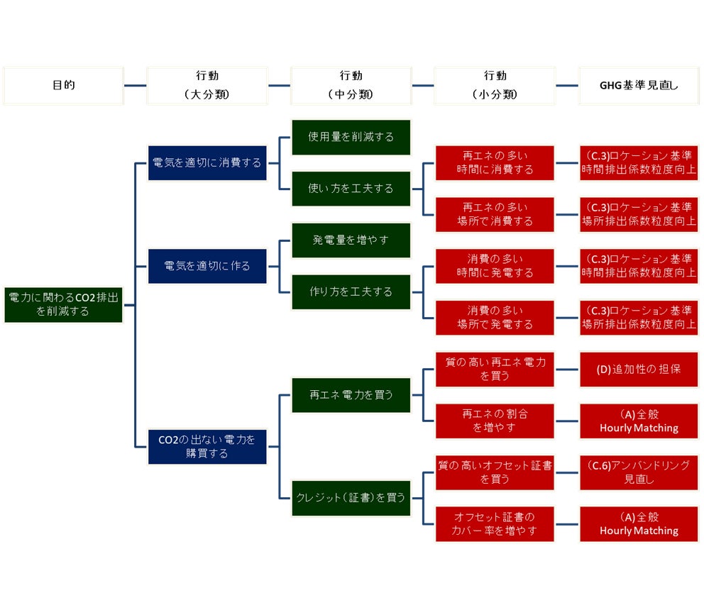 マーケット基準におけるアワリーマッチング等による時間・場所の粒度向上、再エネ電源の追加性担保、オフセット証書による「再エネ電力」定義の厳格化