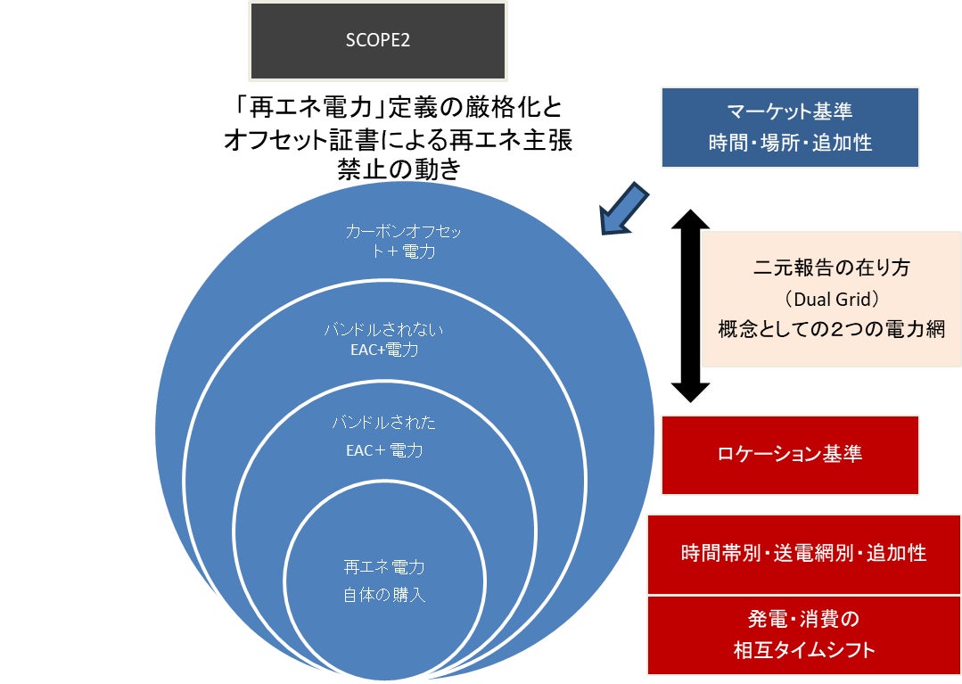 さらに、今般のGHG Protocol Scope 2 ガイダンス改訂においては、「再エネ電力証書」であっても、これを「バンドルド」「アンバンドルド」に区分しようとしたり、アワリーマッチング手法や追加性担保要件により厳格化する動きに注意が必要である。
