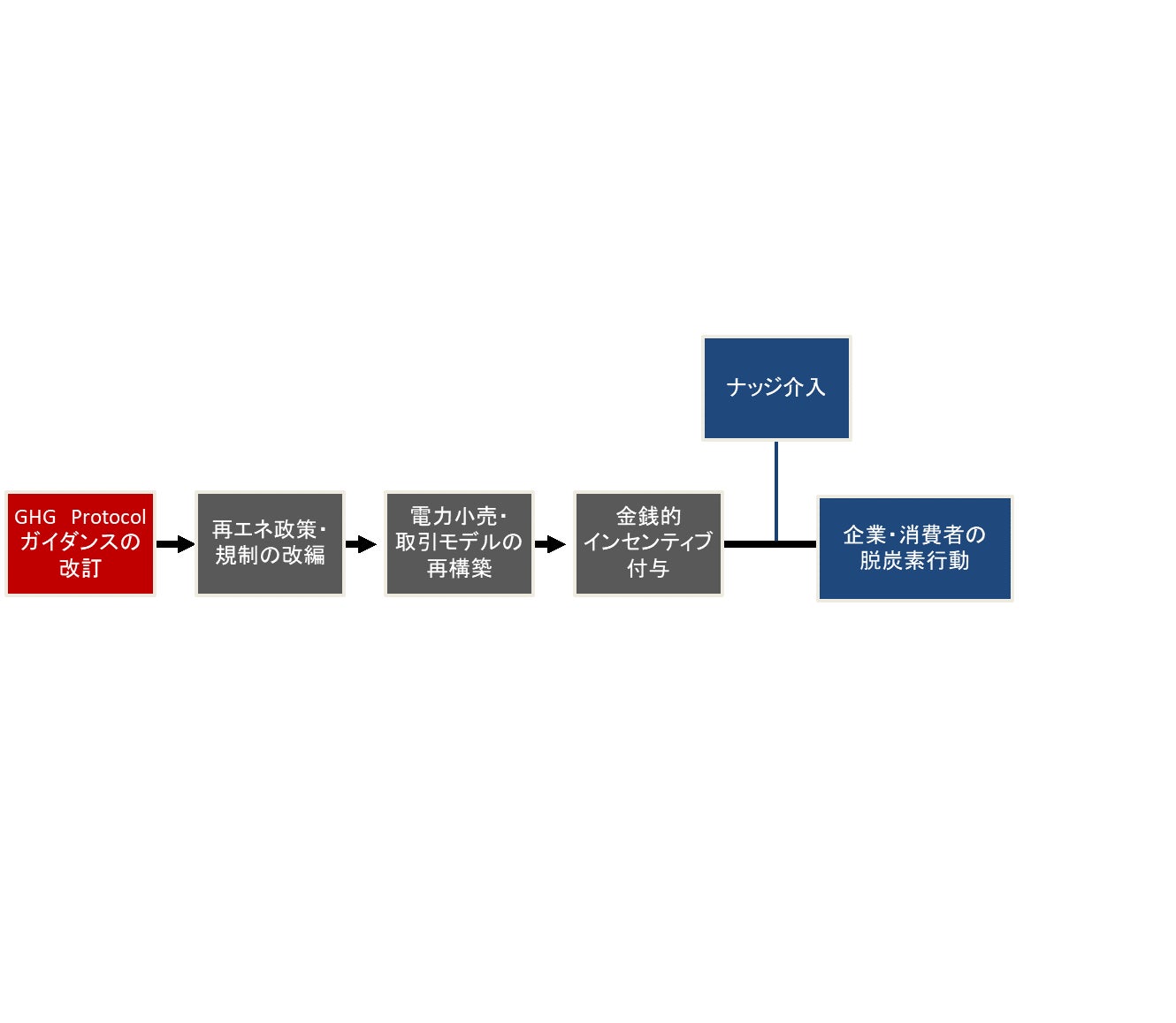 また、上記の適切なナッジ介入モデルの構築に当たっては、ぞの前提として、適切な政策や規制の整備と、それに基づく金銭的なインセンティブ構造(電気料金メニューの見直し)の構築が求められる。