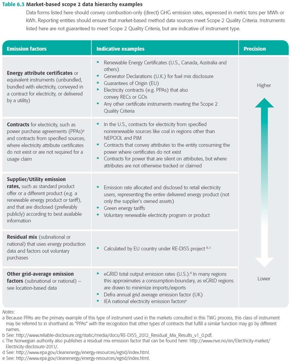 GHGプロトコルにおいては、クレジットによるオフセットはScope1、2、3とは独立して報告すべき旨が記載されている。一方で、再エネ電力や熱証書による再エネ調達は認められている。