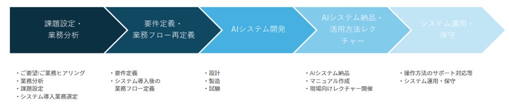 発、AIシステム開発、システム導入後の活用支援までワンストップでご支援いたします。
