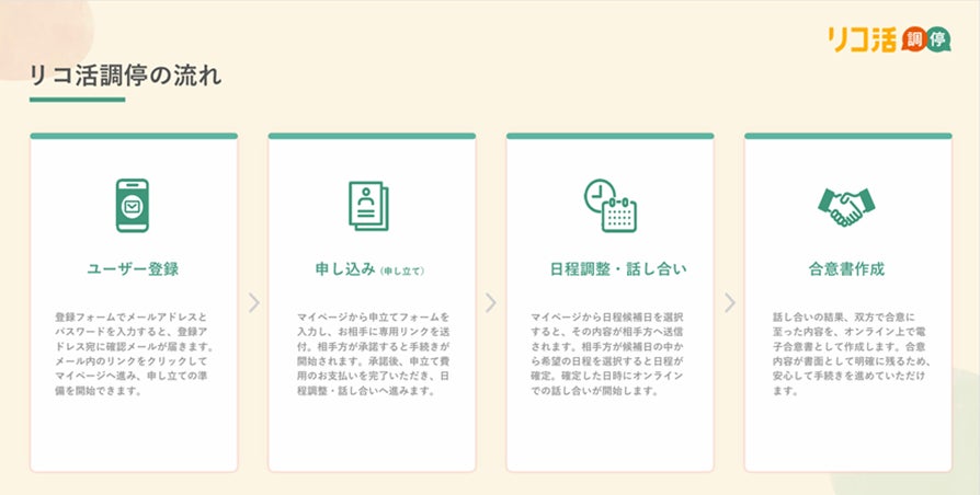 株式会社リライフテクノロジー(本社:東京都千代田区、代表取締役:小林弘典)は、オンラインでの対話を通じて離婚・家族問題の解決を支援するオンライン調停(ODR)サービス「リコ活調停」を、2026年4月1日に正式ローンチいたしましたのでお知らせいたします。