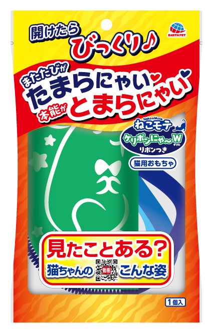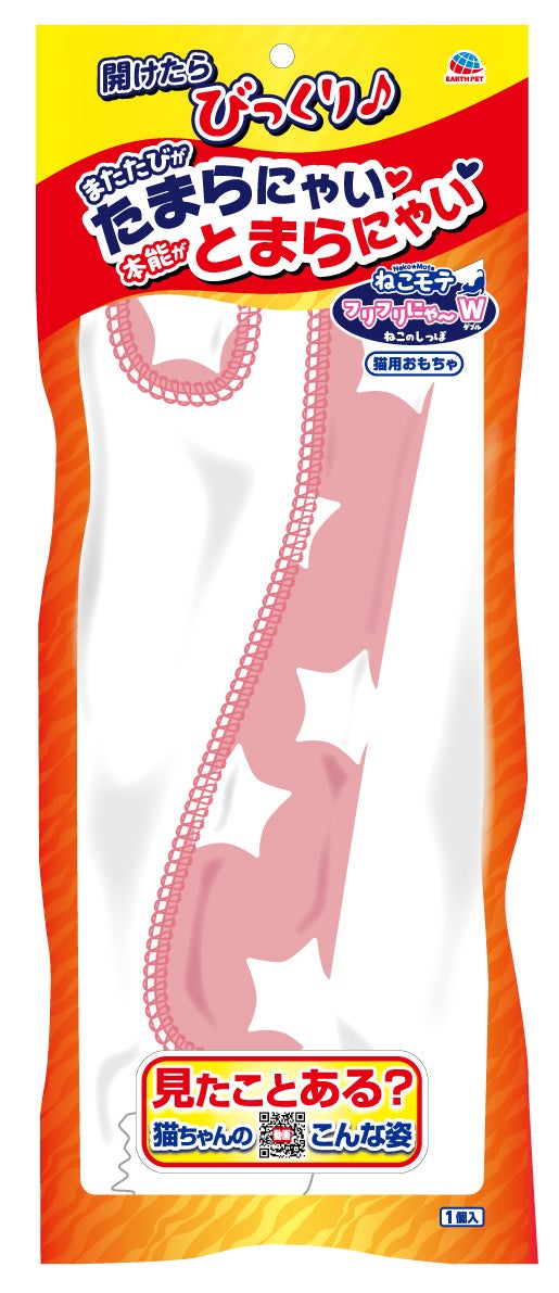 ペットオーナー様と愛猫とのコミュニケーションやストレス解消のおもちゃとして「ねこモテにゃ~シリーズ」を展開しておりましたが、今春『ねこモテにゃ~Wシリーズ』としてリニューアルし「ねこモテフリフリにゃ~Wねこのしっぽ」を新たに追加します。今回またたび・ニクジュヨウを従来品の2倍※2配合しました。だから『開けたらびっくり!』