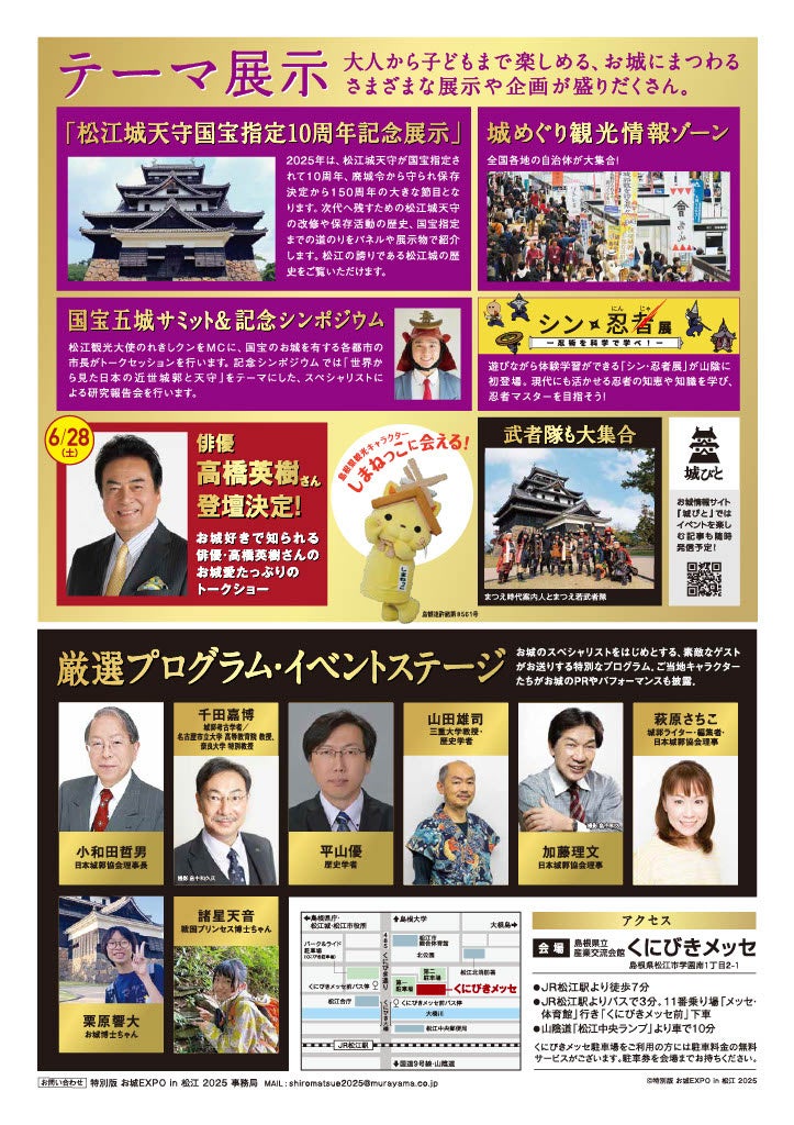 『特別版 お城EXPO in 松江 2025』の最新情報は、お城EXPO公式メディア「城びと」(https://shirobito.jp/)にて、順次ご紹介していきますので、お楽しみに!