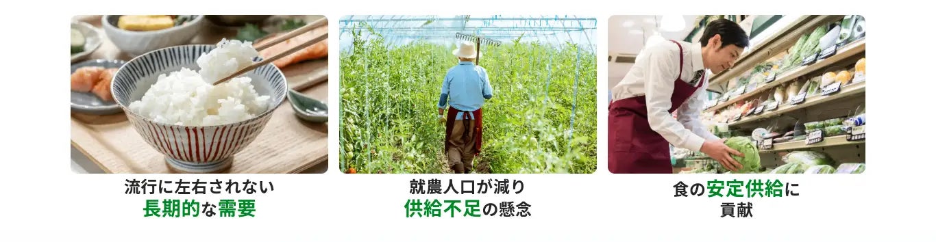 また、農業事業を通じて 地方活性化や持続可能な未来の創造 にも寄与します。