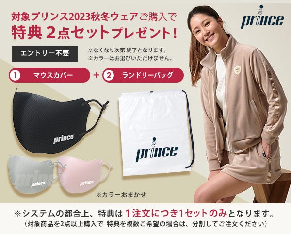 対象の2023年秋冬モデルプリンスアウターウェア購入でprince マウスカバー+ランドリーバッグの2点セットを先着でプレゼント。