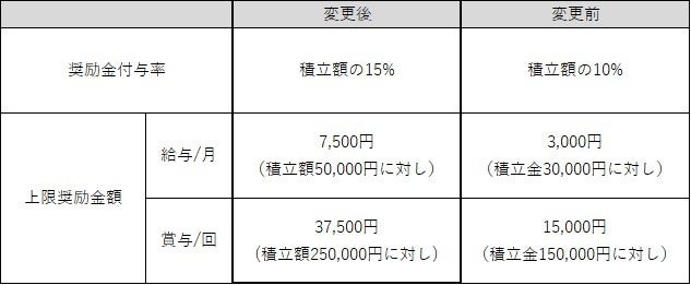 ・従業員持株会における奨励金付与率と積立上限額の引き上げ