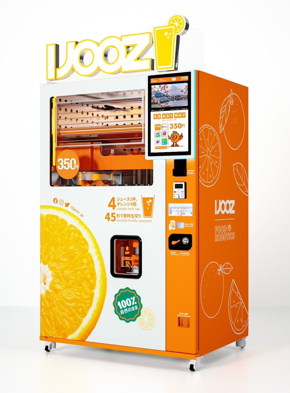 シンガポールのIoTテクノロジー企業・IJOOZ社が製造する最新の生搾りオレンジジュース自販機は、シンガポールで約720台が稼働しているほか、世界33ヵ国に展開し、世界中で人気となっています。