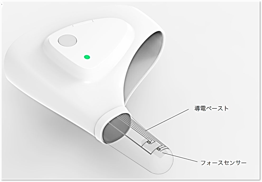 今回開発したデバイスには、当社の独自素材であるシリコーンゴム「DuraQ®導電ペースト」※1を採用しました。これにより、デバイスは柔軟性に優れ、自然で快適な装着感を実現しました。この素材は、繰返し伸縮時の抵抗変化が小さいことから、安定的な波形データ取得を可能にし、デバイスの実用性を向上させています。また、2つのフォースセンサを設置することで、舌の力に加え運動性を評価できることが特徴です。