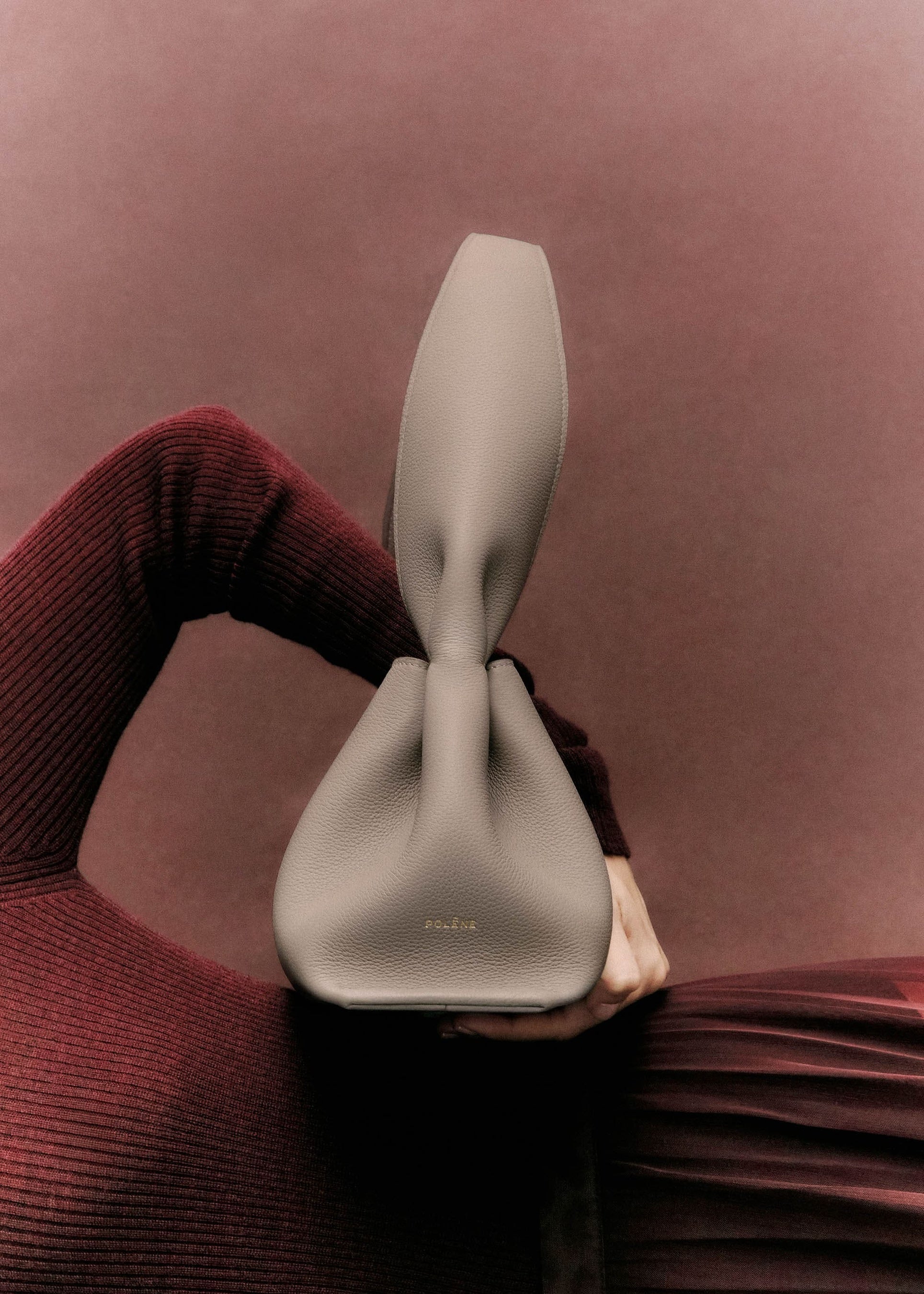オリジナルの「Numéro Neuf」は2020年に誕生し、現在ではポレーヌの創造的な世界観を象徴するコレクションのひとつ。上質な革が生み出すドレープが描く有機的なフォルムは柔らかさを湛え、美しい調和を織りなします。なめらかな手触りのフルグレインカーフレザーを丁寧に裁ち、緻密に形を整えたうえでハンドステッチを施し仕立てました。