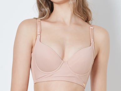 バストに沿いやすい接ぎカップのノンレースタイプが新登場!バストメイク力No.1。セミロング丈で、やわらかいお肉もしっかり寄せ集めます。ぷるんと丸い美しいシルエットをつくり、バスト下のお肉はスッキリ。