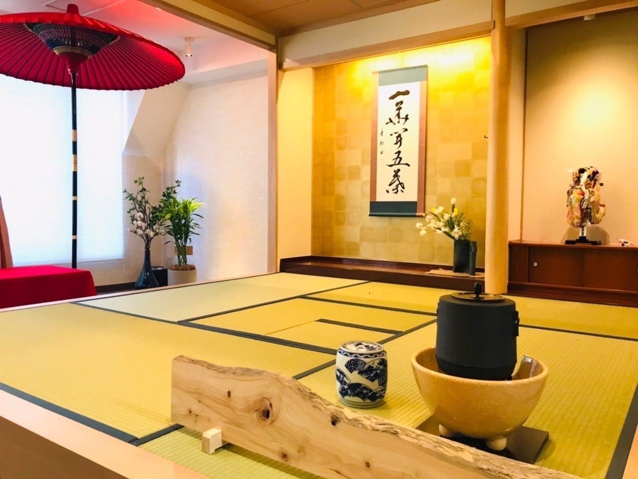和茶子-wasako-は、浅草駅から徒歩20秒、雷門の近くに位置する茶道体験サロンです。茶道の実演を見学し、抹茶と和菓子を楽しんだ後、お客様自身で抹茶を点てる体験ができます。店内は和の設えで統一されており、畳や特別な掛け軸、またR-LIVEハイレゾリューションスピーカーで再生される日本の森林の音により、リラックスできる空間を提供しています。また、室内は免疫加工が施され、善玉菌を噴霧する加湿器が稼働しており、マインドフルネスを促進する環境です。