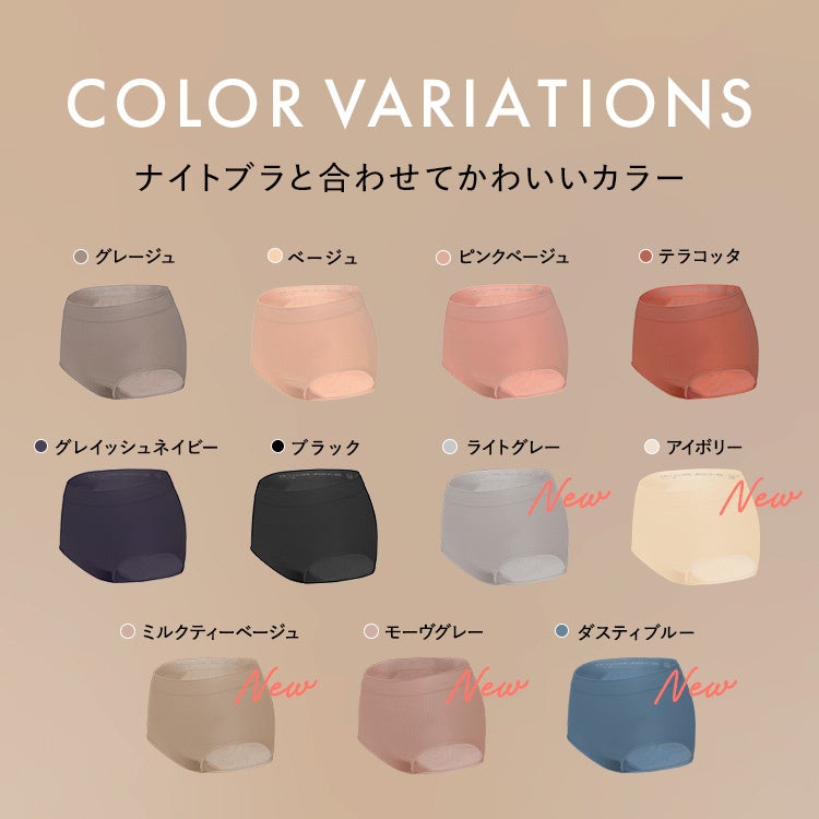 『BAMBI WATER スタイルショーツ』は2年連続で「楽天年間ランキング」のインナー・下着・ナイトウェア部門で1位を獲得した「BAMBI WATER スタイルナイトブラ」とセットで着用できるセットアップショーツです。“ナイトブラとセットで着用できるショーツが欲しい”という多くの声をいただき、2024年2月から6色展開で販売を開始し、今回新たに5色をラインナップに加え、全11色展開となります。