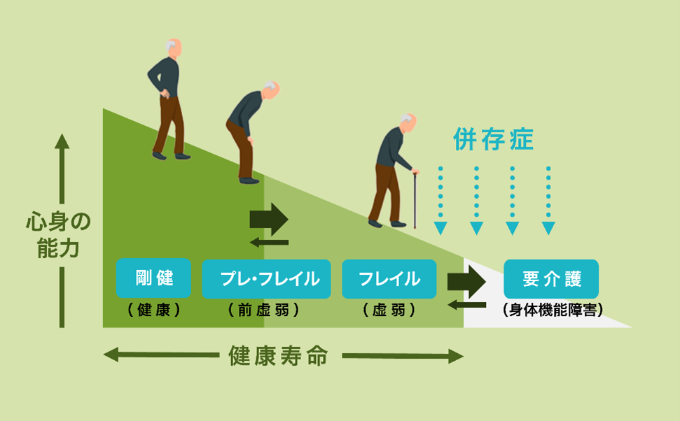 【図解】フレイルとは?主な原因と3つの対策【フレイルチェック】 – ネスレ ヘルスサイエンス オンラインショップ (nestle.jp)