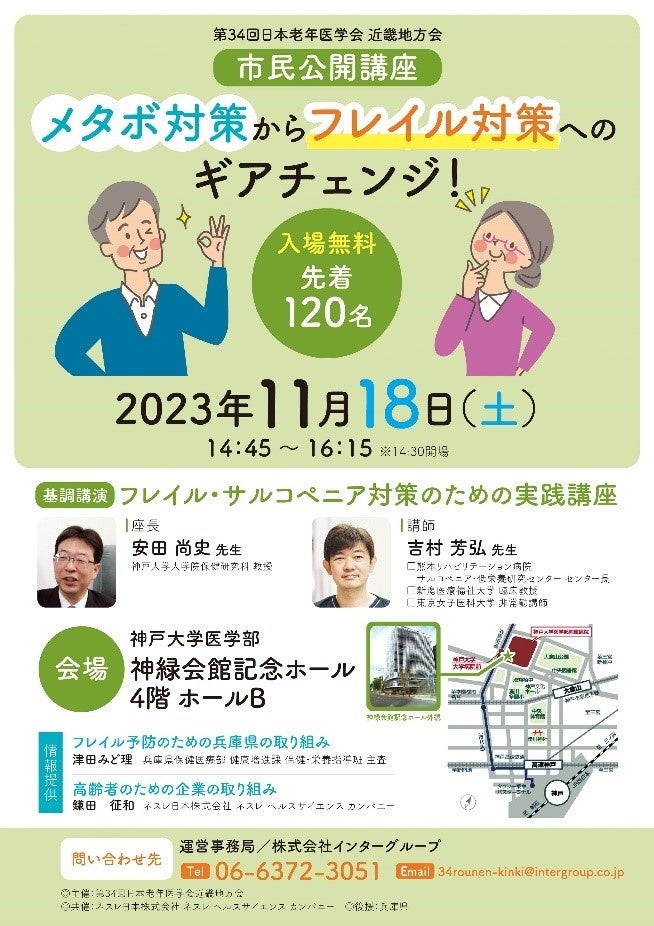 「第34回 日本老年医学会 近畿地方会 」において市民公開講座「メタボ対策からフレイル対策へのギアチェンジ!」を産官学連携で開催