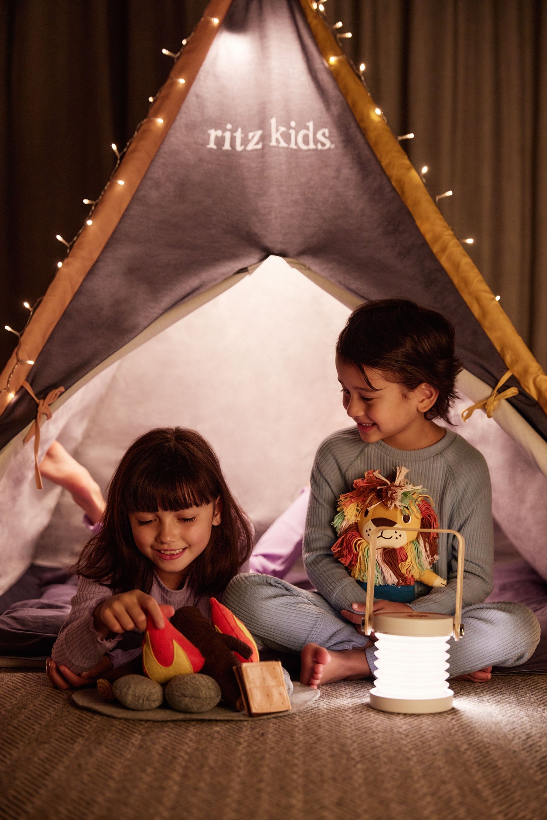 リッツ・キッズの人気定番体験「ナイト・サファリ」がアップグレードされました。客室またはスイートルーム内に新設計のテントを設置し、ポータブルUSB充電式ランタンやカラフルなフェルトのおもちゃ「キャンプファイヤー」など、環境に優しい「キャンプ・アクセサリー」をご用意します。一部のホテルでは、ナイト・サファリのアクティビティとして、屋外の星空観察、夜の映画上映、夜のデザートバーなどが提供されています。