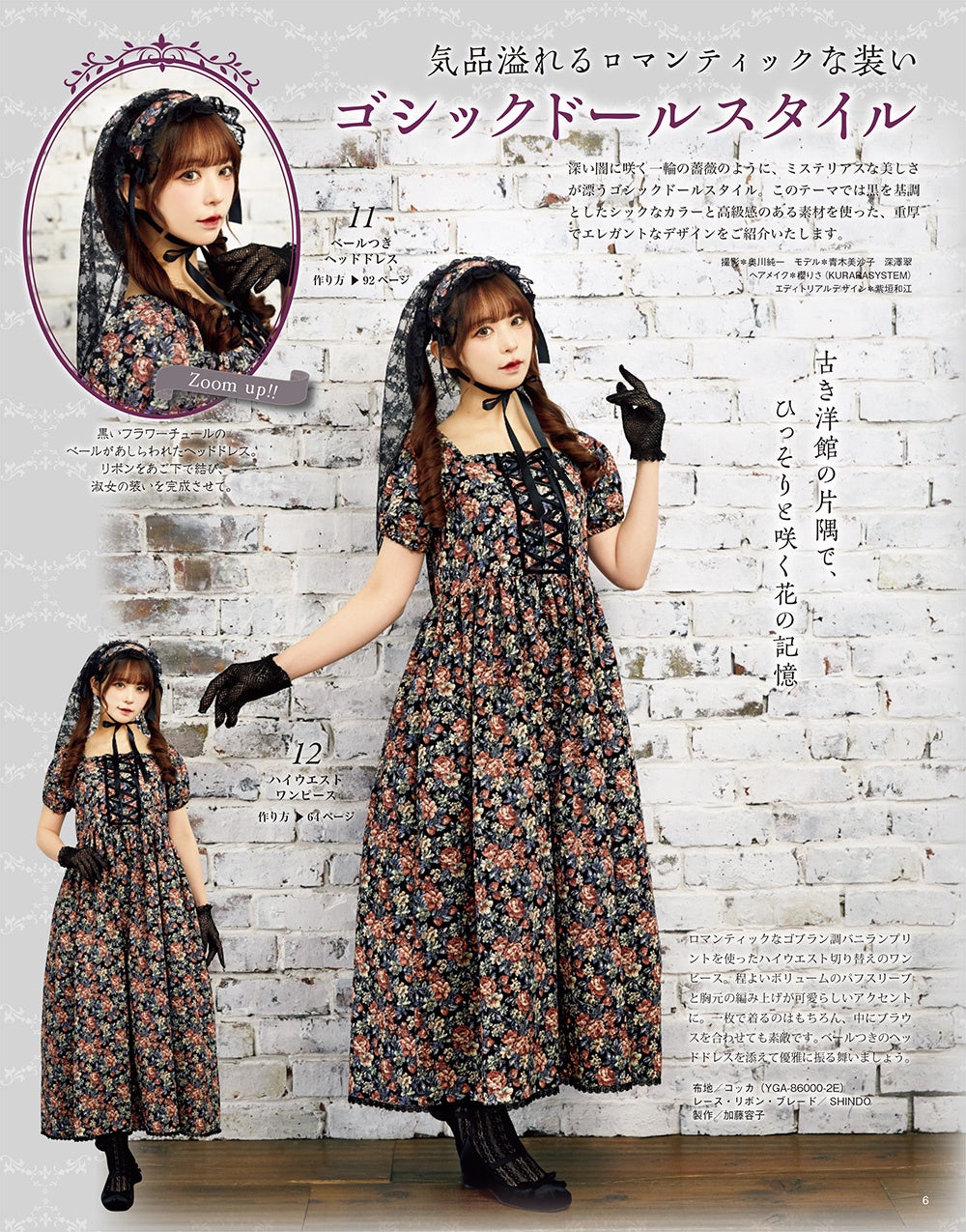 可愛らしい懐古ロリータから、気品あふれるゴシックエレガンス、素朴なカントリースタイル、そしてクラシカルなヒストリカルスタイルまで、幅広い世界観のお洋服を掲載。一部作品には実物大型紙が付属し、S/M/Lの3サイズ展開でお作りいただけます。