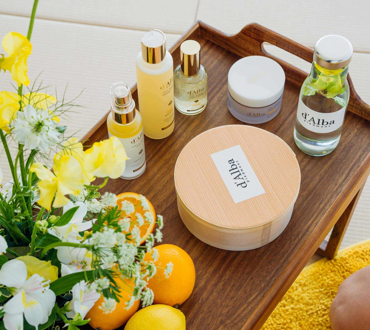 サウナ後の外気浴やラウンジでのリラックスタイムには、刻々と移り変わる富士山と山中湖の絶景を眺めながら、d'Albaのヴィーガンスキンケアラインをご体験いただきました。温まり、やわらかくなった肌にd'Albaのミストやビタトーニングカプセルクリームが心地よくなじみ、うるおい・ツヤ・透明感をチャージする時間をご提供いたしました。