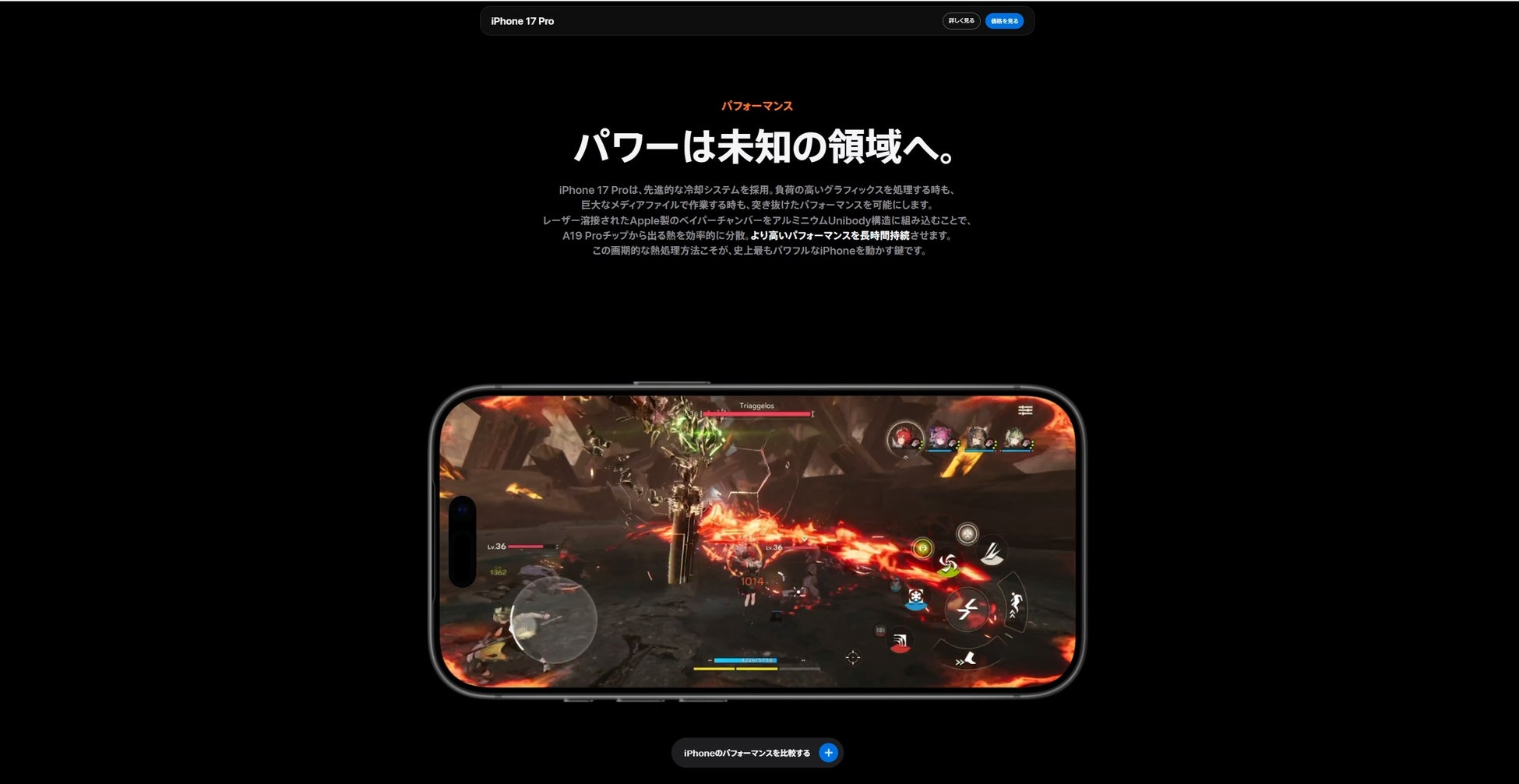 最新の「iPhone 17」シリーズの性能を紹介するデモンストレーションとして、約10秒間のゲームプレイ映像が公開され、高精細なグラフィックと快適な動作をご覧いただきました。本発表は、世界中の視聴者の目に触れる貴重な機会となり、本作への期待感をさらに高める発表となりました。