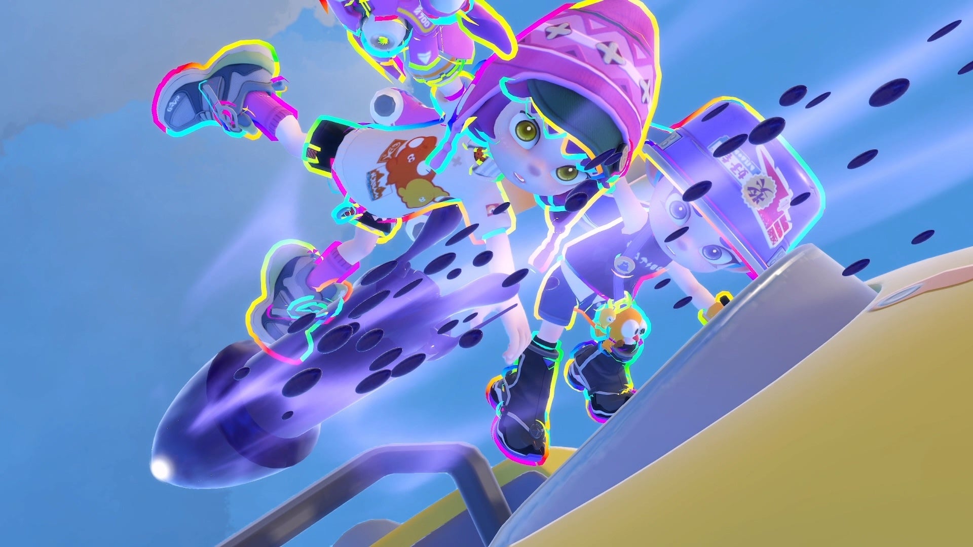 『ポッピュコム』は、最大4人で仲間と共に色彩豊かな冒険を楽しめるマルチプレイ専用ゲームです。敵と同じ色で攻撃すると倒せるシステムを採用しており、2色の攻撃を切り替えながら協力してステージを攻略していきます。さらに、シールドで攻撃を防いだり、ドローンで足場を作ったりと、多彩なアイテムを駆使して道を切り開くことが可能です。仲間と一緒に挑むパーティーモードも収録された『ポッピュコム』が、Nintendo Switchに登場します。