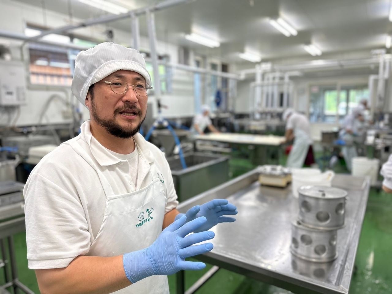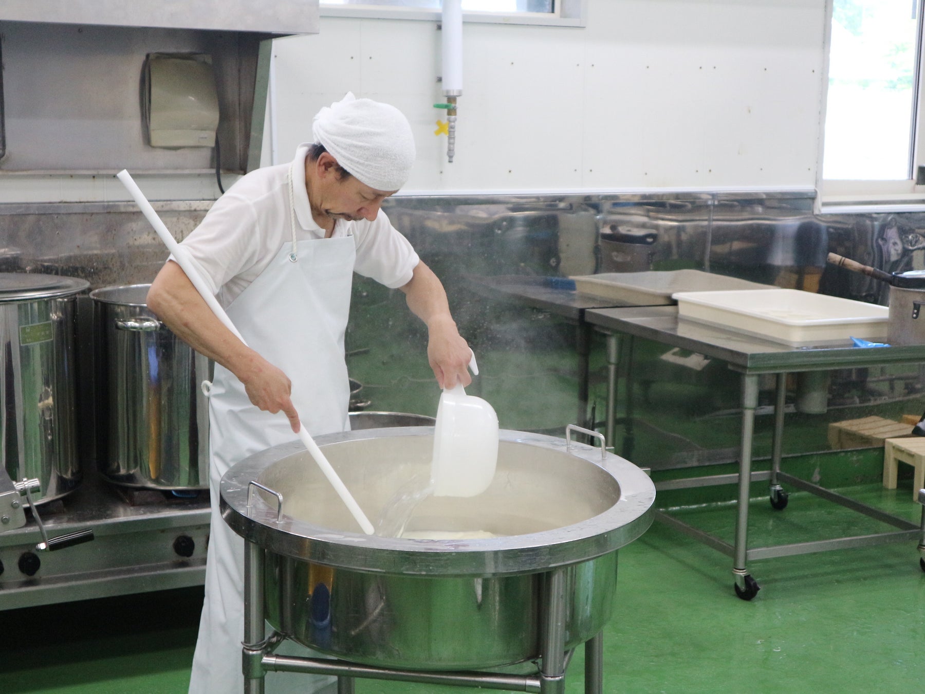 及川:乳の発酵時間に合わせて自分の作業を終わらせないといけないので、そうなると油断もできないし、ボーッとすることもできない。というのも、工房内は湿度が90%くらい、温度も38度くらいまで上がります。お湯を使って大きな容器の中に頭を入れて洗い物をしたりするので、時々気が飛びそうになることもあります。体力を使う作業が多く大変なのですが、頑張っていいものを作ればそれを喜んで食べてくれる人がいて、その対価として僕らがまたチーズを生産できる。そういうサイクルが私達のやりがいに繋がります。
