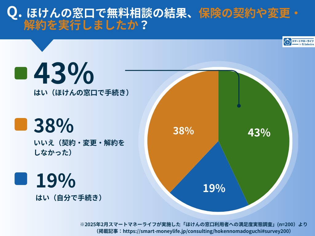 一方で、アドバイスを受けた結果、一部の保障を削除したり、新たに加入したりといった手続きが発生することもあるため、その場合は「ほけんの窓口」で契約や変更の手続きを代行してもらう方法を選ぶ人もいました。