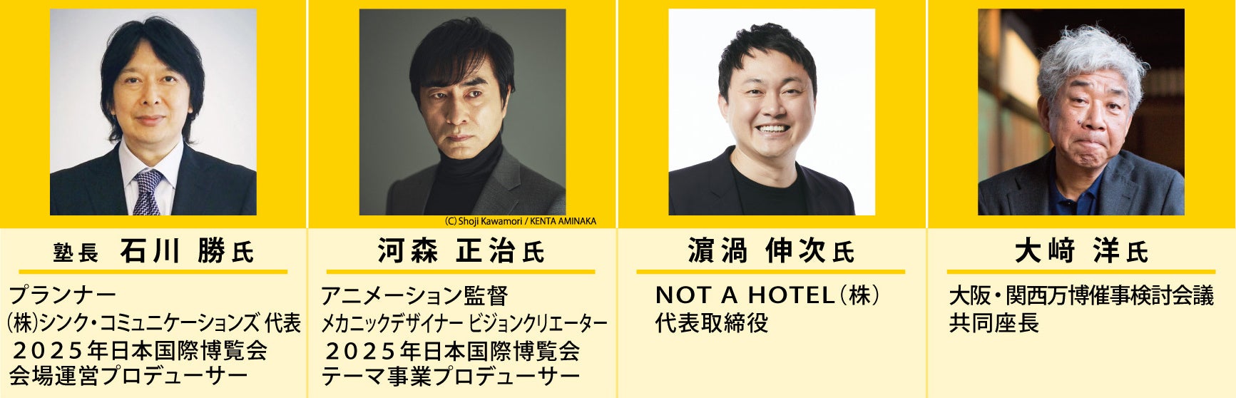 大阪・関西プロデューサーである石川勝先生、河森正治先生をはじめ、濵渦伸次先生、大阪・関西万博催事検討会議共同座長の大﨑洋先生を講師としてお招きし、塾長でもある石川勝先生から全4回直々に企画のワークショップをご指導いただく、他所ではない貴重な研修です。