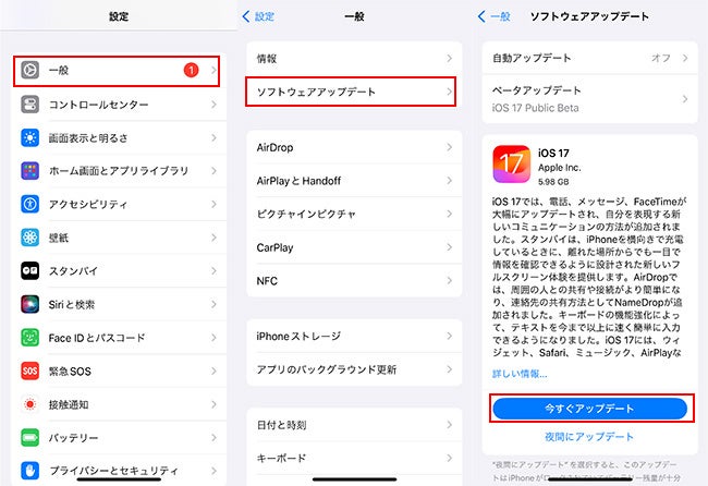 iOS 17にアップデートする方法