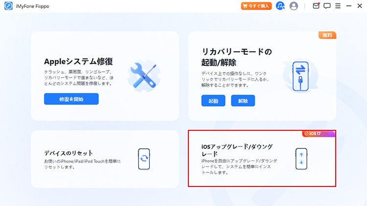 ステップ 1.Fixppoを起動して「iOSアップグレード/ダウングレード」を選びます。
