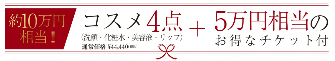 通常価格が45,000円相当のスキンケアコスメや最大5万円相当のお得なチケットが付いて、25,000円(税込)でご用意しております。数量限定のため、なくなり次第終了です。