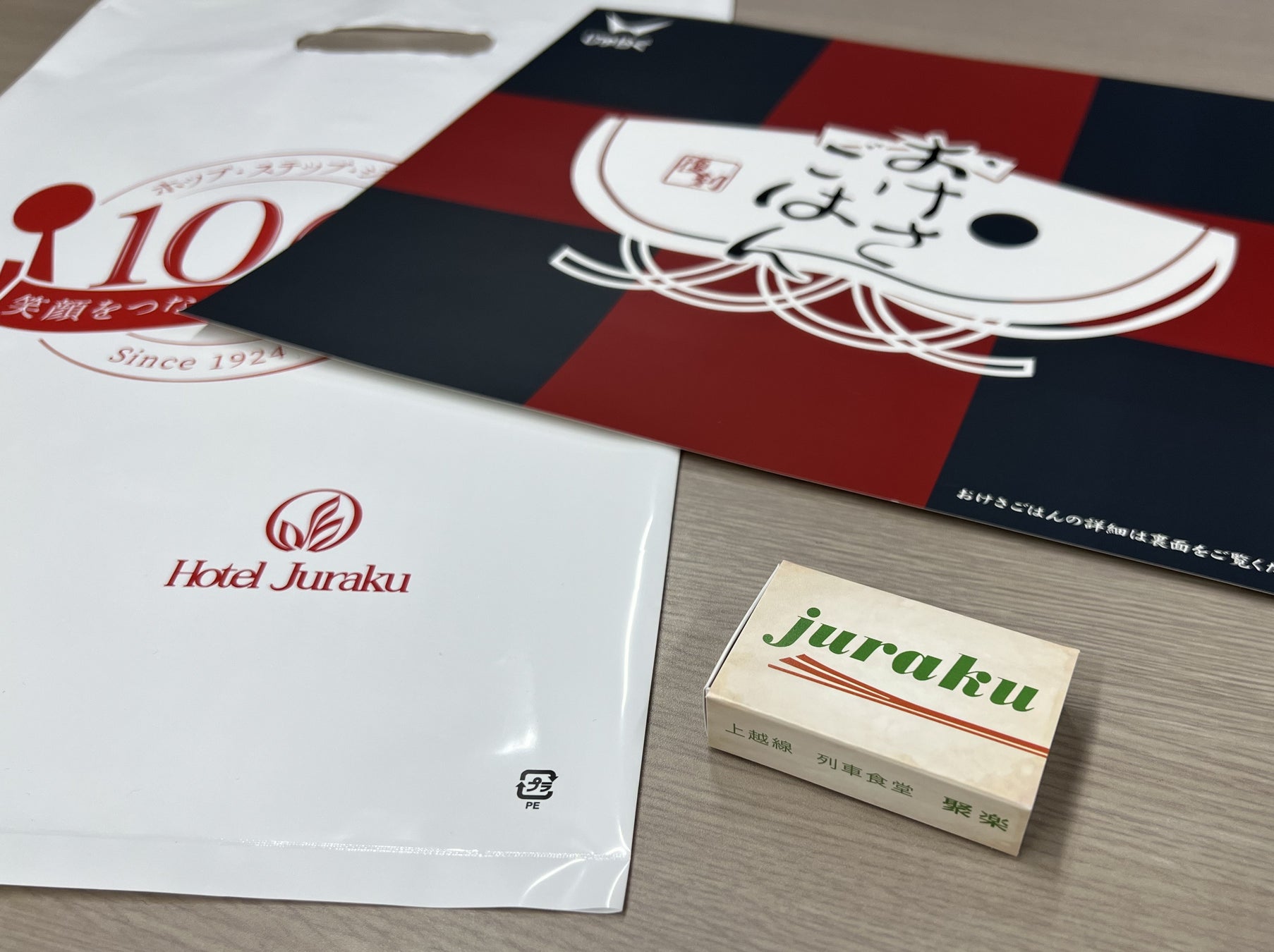 【創業100周年の聚楽】上越新幹線の温かいお弁当『おけさごはん』を上野で復刻~聚楽列車食堂マッチ箱付箋のお土産付き~