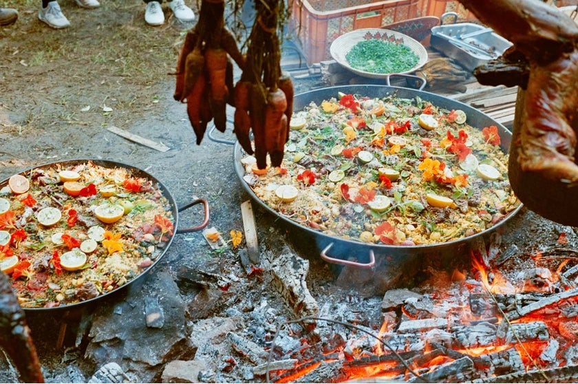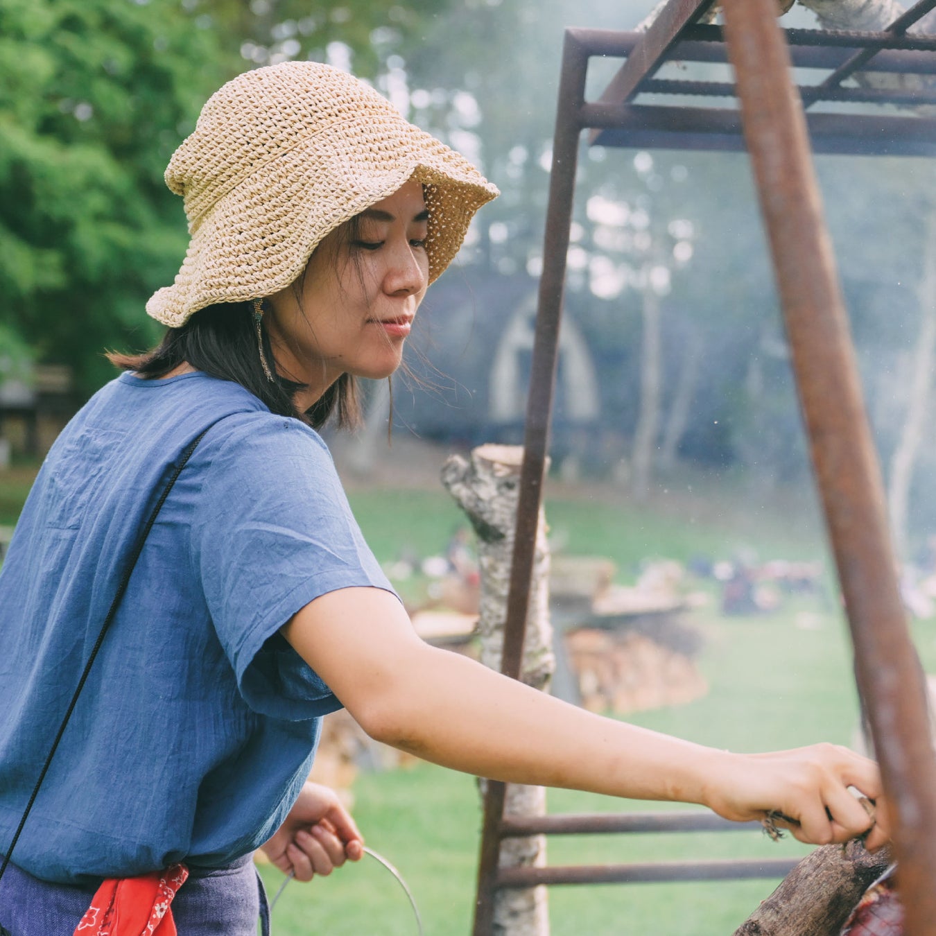 那須の野山にある木や石、竹を組み、焚き火で料理を行う、一からつくりあげるプリミティブな野外キッチン。手間暇かけて愛情たっぷりの農を育む生産者、未来をつくるこどもたち、地域を深く知る地元住民たちが焚き火を囲みながら、暮らしの知恵や那須の恵みをみんなで分かちあい、再発見しながら作りあげる大きな食卓。