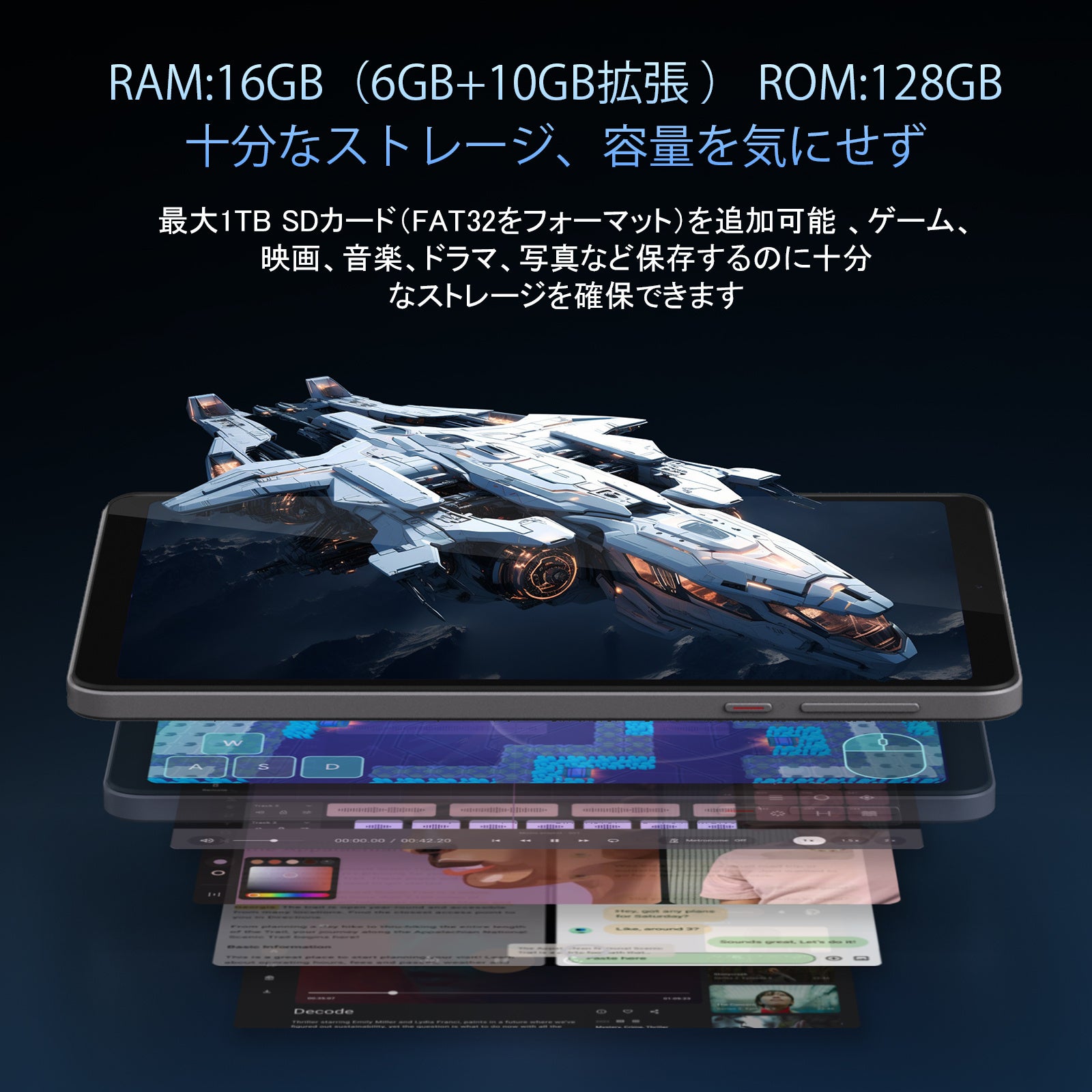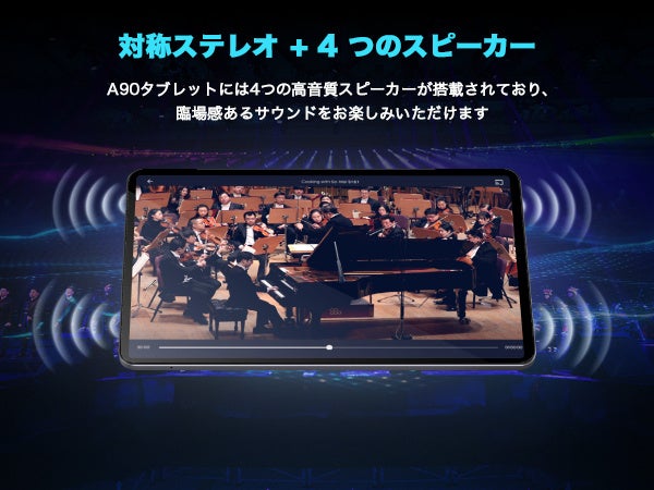 [𝟮𝟰𝗥𝗔𝗠+𝟮𝟱𝟲𝗚𝗕 𝗥𝗢𝗠・𝟰つスピーカー]大容量タブレットA90は24GB RAM(8GBのRAMに加え16GBの拡張メモリー)、アプリケーションを素早く起動し、マルチタスクのウィンドウを非常にスムーズに処理することができます。256GB uMCP2.2のストレージで、写真、ドキュメントをさらに保存できます。また、マイクロSDカードスロットはストレージを最大1TBまで拡張できるため(FAT32形式、別売り)、電子書籍、ビデオ、写真など、お気に入りのすべてのメディアファイルを一緒に保存できます。さらにA90タブレットには4つの高音質スピーカーが搭載されており、臨場感あるサウンドをお楽しみいただけます。