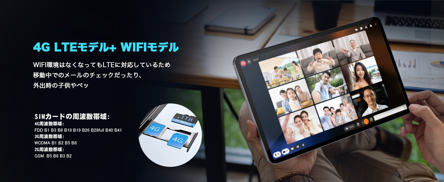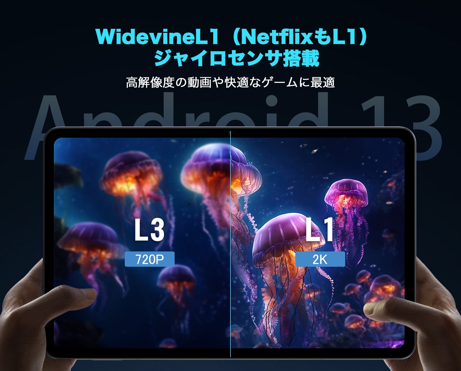 2K IPS画面 Widevine L1 WIFI SIMフリーデュアルモードタブレット大容量バッテリ急速充電対応アンドロイドタブレット顔認識GPS/GMS/TELEC認証済OTG対応ジャイロ光センサ搭載日本語仕様書535g薄型軽量タブ