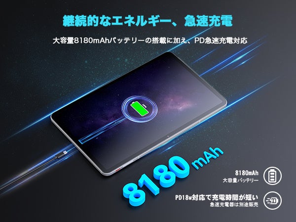 [𝟴𝟭𝟴𝟬𝗺𝗔𝗵バッテリ・ 光・ジャイロセンサ搭載]AvidPadタブレットA90は8180mAhの大容量バッテリーを搭載しており、長時間の使用でも安心です、PD18W急速充電にも対応しており、急な外出先でも充電がスムーズに行えます。さらに、光センサーを搭載しており、明るさを自動に調整できて目を保護できます。重力センサー、ジャイロセンサ搭載より良いゲーム体験を提供します。タブレットA90は汎用的に使用できるタブレット、アンドロイドの世界を楽しもう!プレゼントにも最適!ご注意:①同梱の充電器は5V/2Aですが、PD 18Wの充電器はご自身でご用意ください。