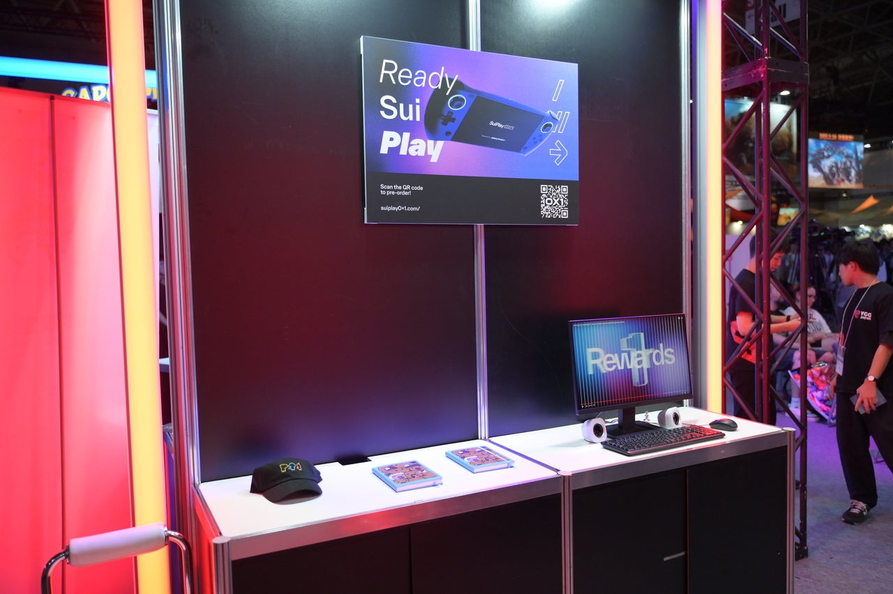Suiブースでは、Web3ネイティブ機能を備えた初の携帯型ゲーム機 『SuiPlay0X1』の紹介をメインにチラシやプレゼントを用意しておりました