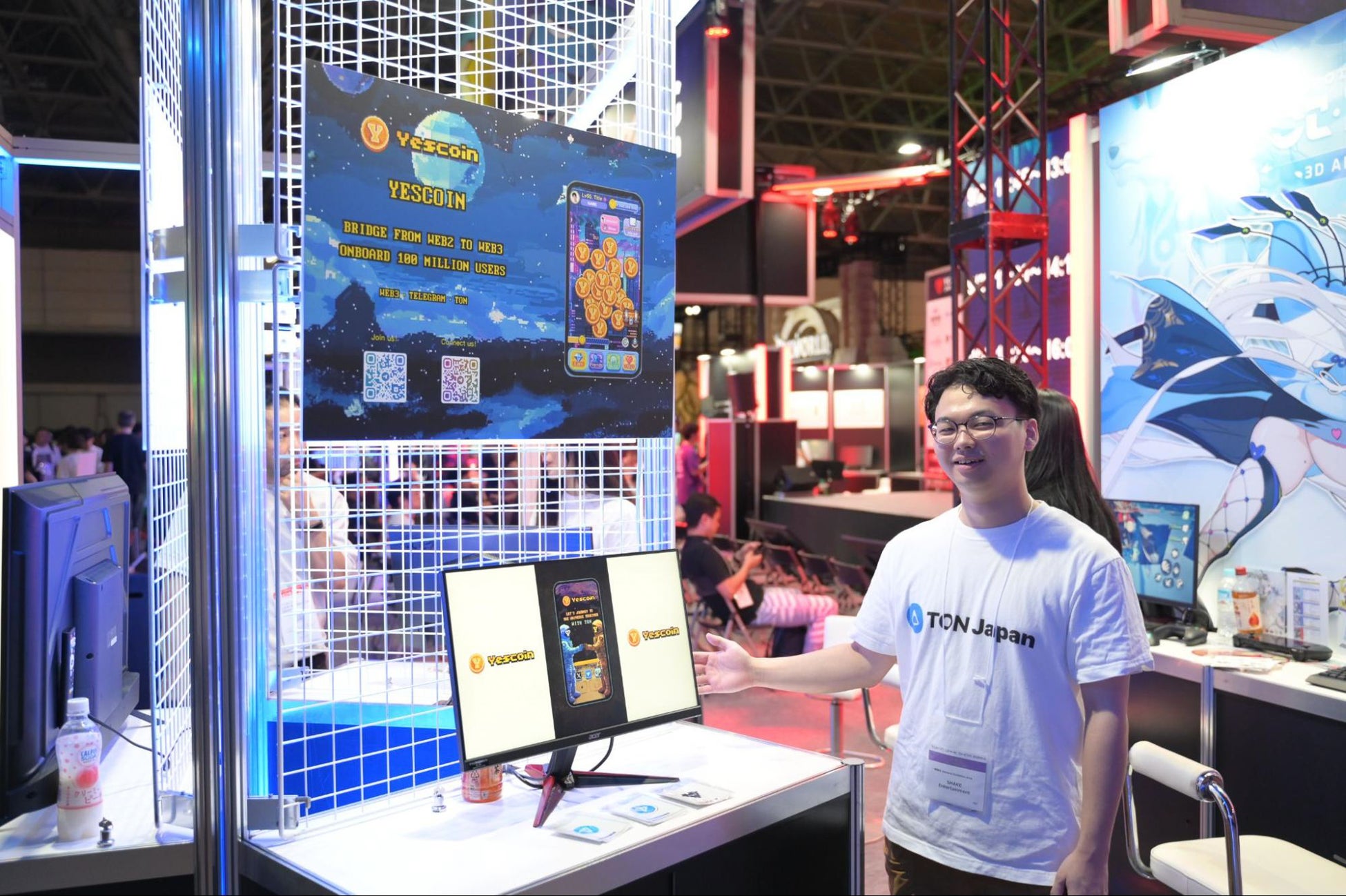 TON Japanのブースでは『CATIZEN』『CatChef』『Yescoin』のプロモーション動画が流されており、ピンバッジなどのプレゼントが配られました。