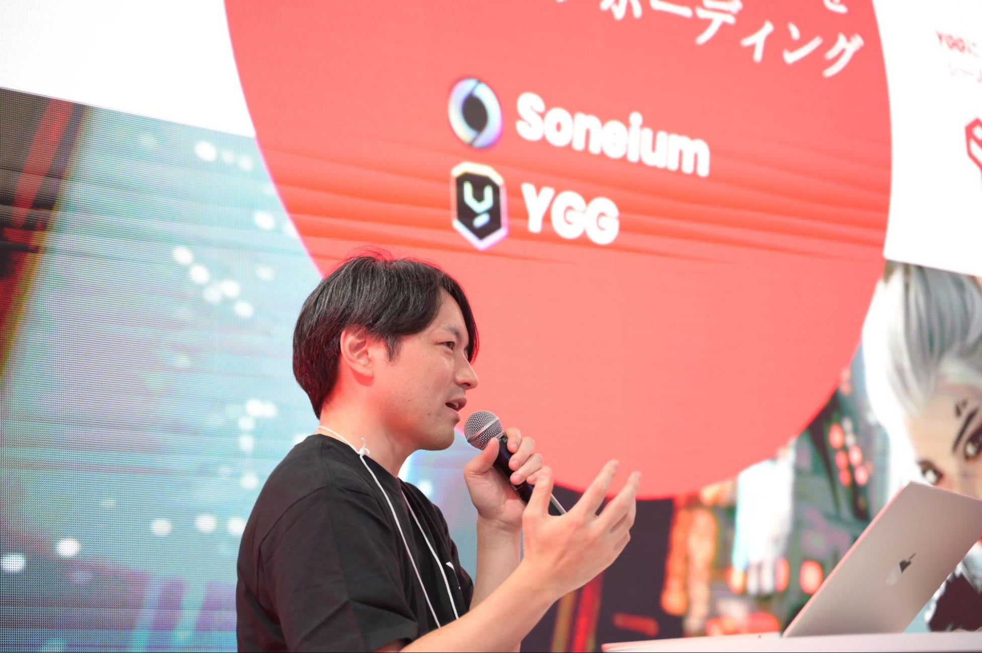 9月26日(木)に行われた本セッションでは、YGG Japanの原島が登壇し、SONYが提供するブロックチェーン「Soneium」のゲーム特化型レイヤー3である「YAIBA」が、世界で高い注目度を誇る日本の豊富なゲームIPコンテンツを、まだユーザー層が薄いWeb3ゲームの世界へ、言語、文化、商習慣の障壁を越え、シームレスに橋渡しする構想を発表しました。