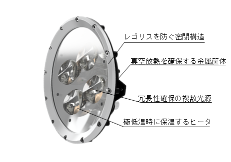 そこで、極低温環境下でも安定動作を維持する保温ヒータ、真空に対応する放熱構造、冗長性を 備えた複数光源など、高い信頼性を確保する技術開発に取り組んでいます。