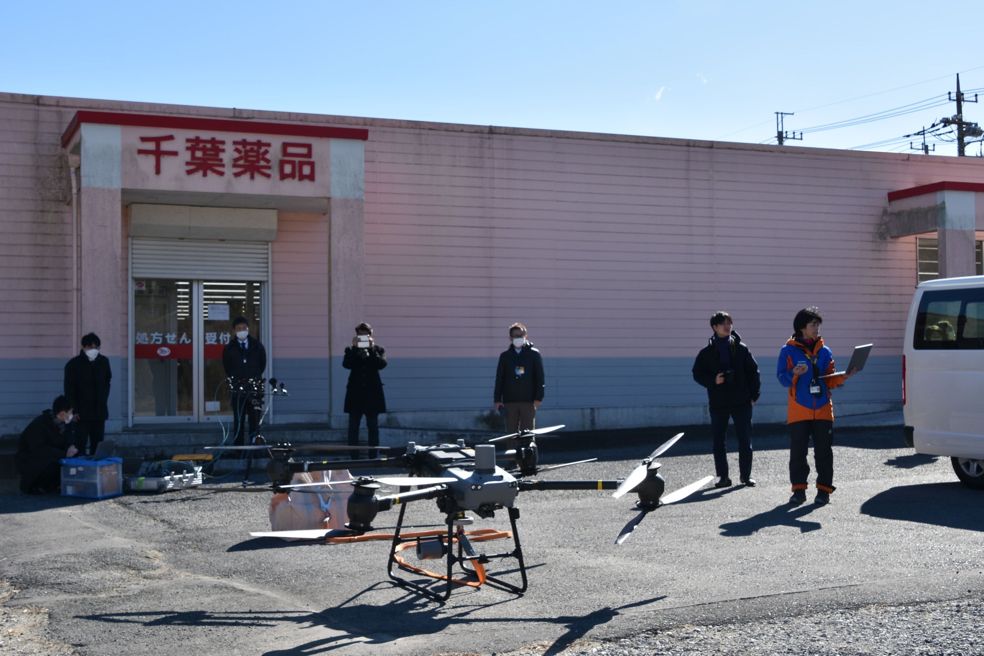 2025年2月中旬に実施した第3回目の実証実験では、「買い物弱者支援のための物流実験」として、ドラッグストア(ヤックスドラッグ東庄店)から個人宅へ日用品を配送し、日常生活の利便性向上に向けた検証を行いました。