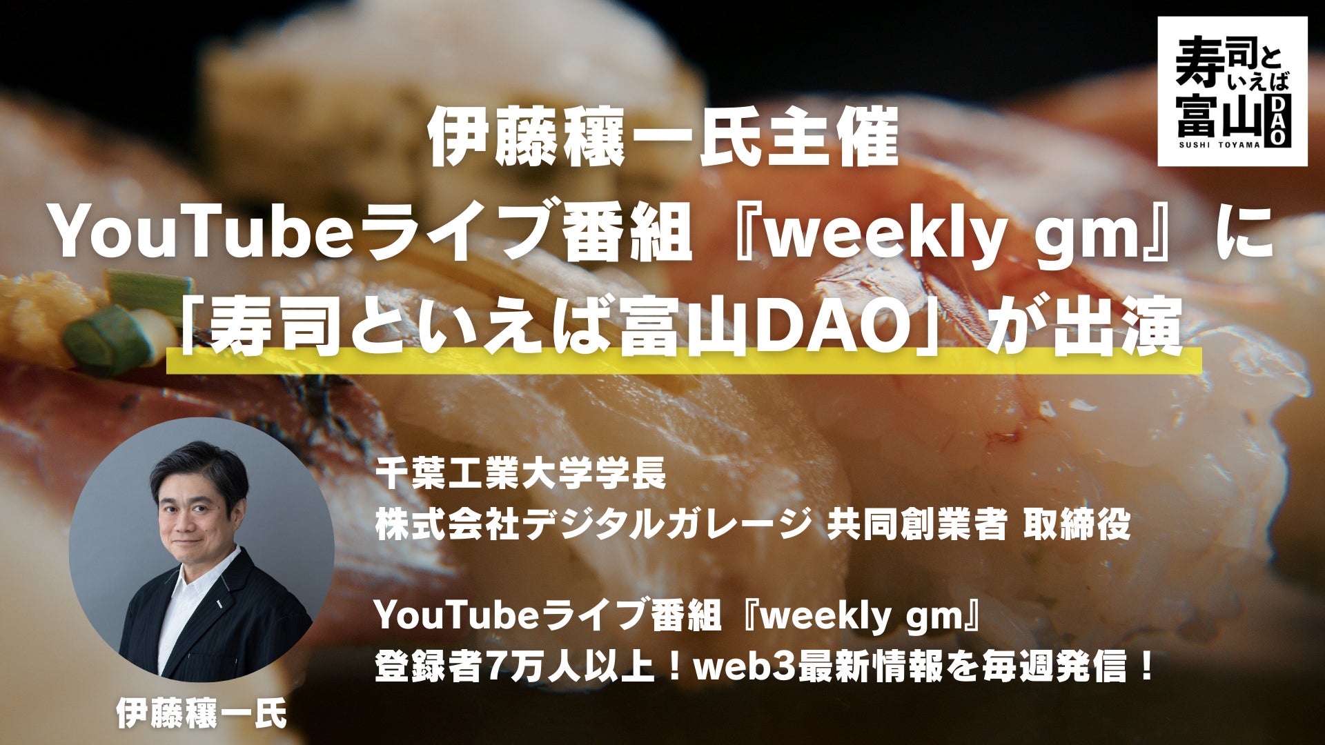 伊藤穰一氏主催 YouTubeライブ番組『weekly gm』に、富山のお寿司を盛り上げるオンラインコミュニティ「寿司といえば富山DAO」が出演