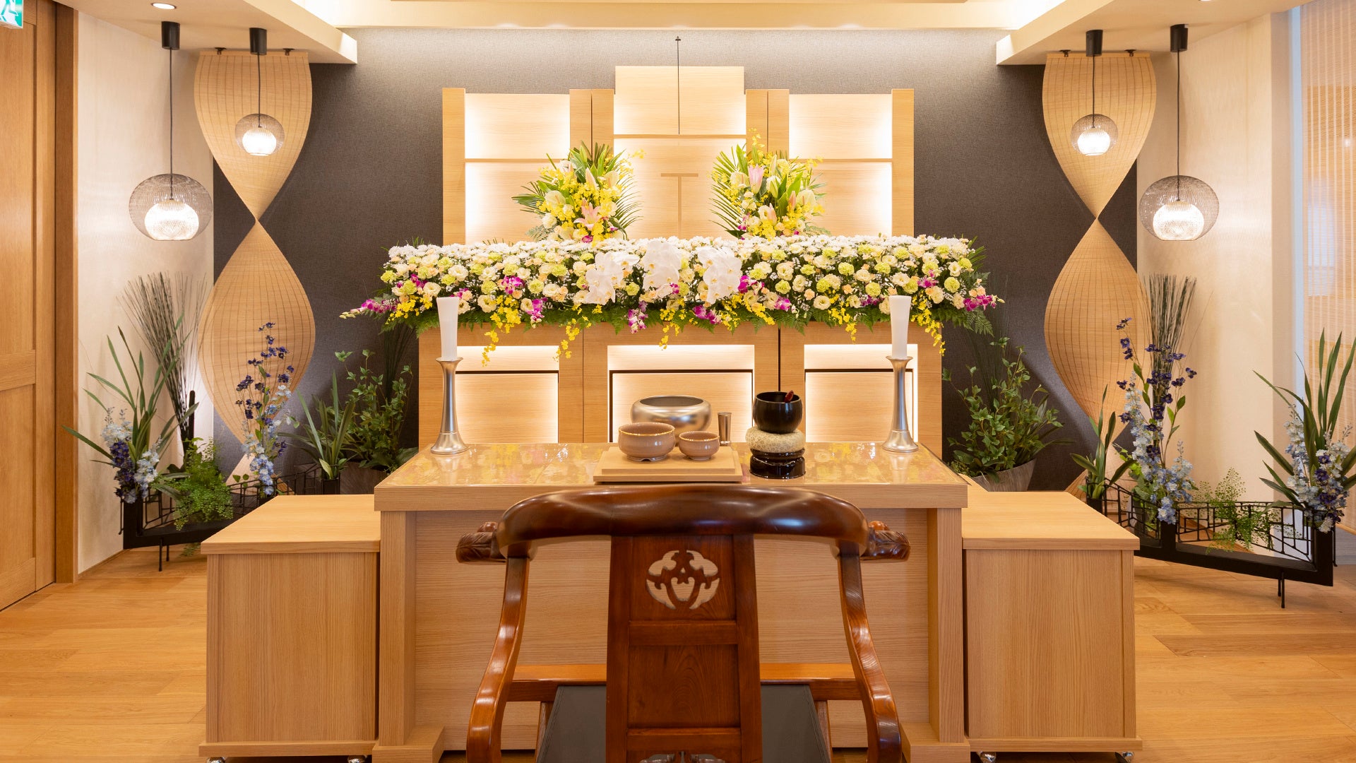 祭壇は丁寧に整えながらも堅苦しさを抑え、邸宅らしい落ち着きと温もりを大切にしています。