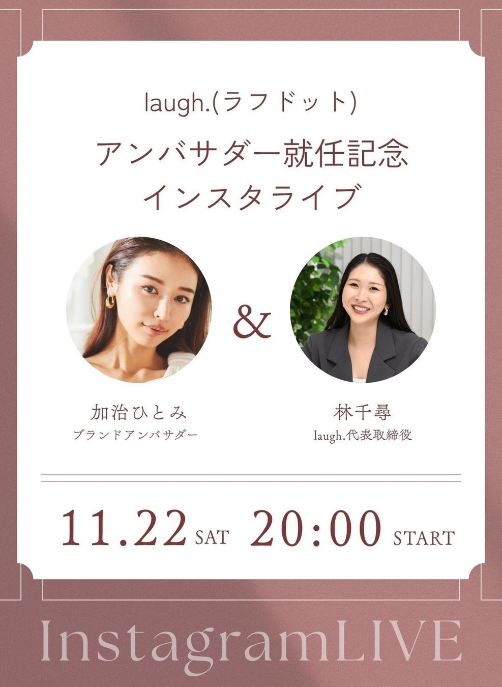 laugh.公式Instagram(https://www.instagram.com/laugh.__official/)と加治ひとみ公式Instagram(https://www.instagram.com/kaji_26/)の両アカウントで同時配信予定です。お見逃しなく!