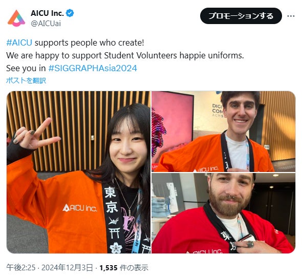 AICU、CGとインタラクティブ技術に関する世界最大の国際会議のプログラムスポンサーとして参加 #SIGGRAPHAsia2024